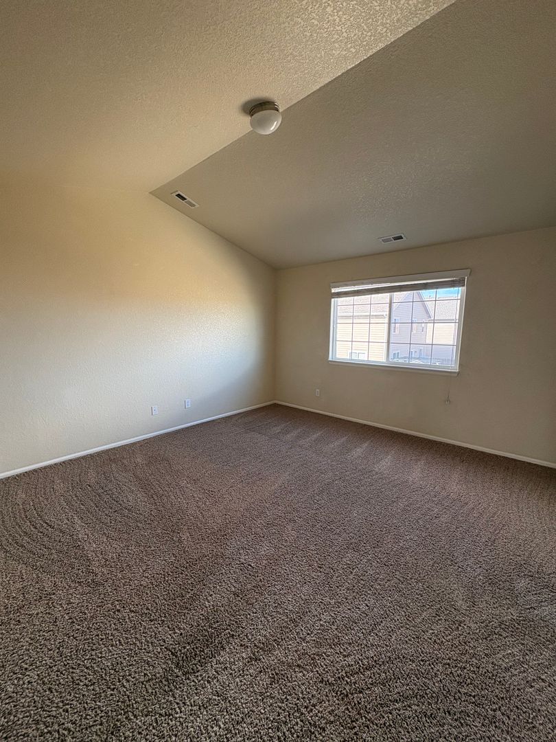 Minutes from Fort Carson, Peterson and Shriever Space Force bases, this 3 bedroom 2.5 bath townhome is a blend of thoughtful design and comfort. The main level features an open-concept floor plan with the living room, kitchen and dining room flowing seamlessly together. The sliding glass doors off of the dining area opens to a fenced patio area and leads to the detached garage. All three bedrooms and the laundry room are conveniently located on the upper level. The primary suite includes a walk-in closet and private bath, while two additional bedrooms share a hall bath. Located near parks, walking trails, and easy access to shopping, dining, and everyday amenities.
